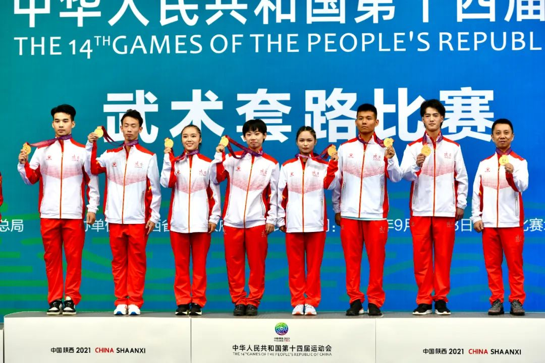 本网讯 9月1日至3日,中华人民共和国第十四届运动会武术套路比赛在陕西咸阳职业技术学院体育馆举行。万象城武术学院学生陈颖、张寒松、王佳强、郑海涛、耿明浩参加了7人6项团体项目中的男子三人对练和女子二人对练比赛,经过一番激烈角逐,王佳强、郑海涛、耿明浩的三人徒手对练获得金牌,陈颖、张寒松获得女子双人对练银牌,为陕西队最终赢得武术套路团体项目金牌贡献了万象城力量。