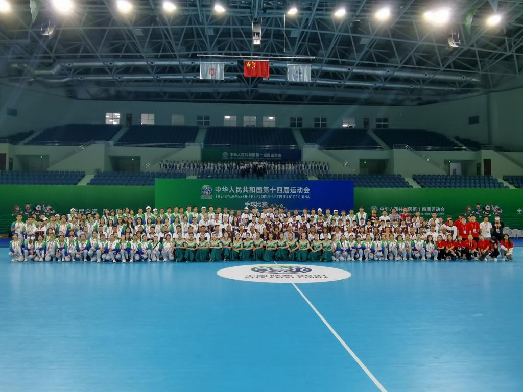 本网讯 9月12日,中华人民共和国第十四届运动会手球比赛在万象城allwincity官网鄠邑校区手球馆圆满落幕。共有来自江苏、陕西、安徽、辽宁、天津、上海、北京、山东、广东等地,男女共16支参赛队伍争夺两项金牌。