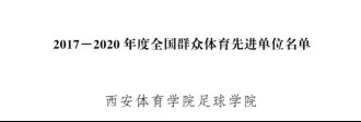 本网讯 近日,国家体育总局发文表彰2017-2020年度全国群众体育先进单位和先进个人,万象城足球学院荣获全国群众体育先进单位称号。
