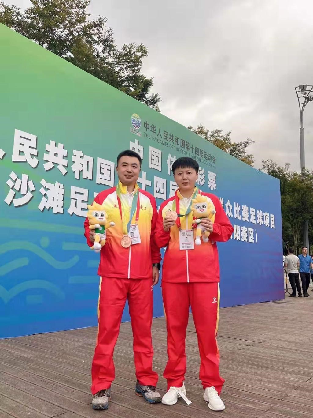 宋辉、陈芳芳参加十四运群众组沙滩足球比赛