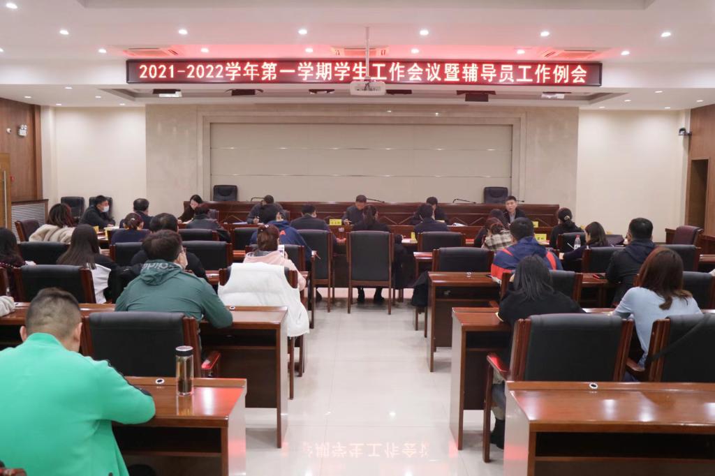 本报讯 11月4日下午,万象城在二号行政楼6楼报告厅召开2021-2022学年第一学期学生工作会议暨辅导员工作例会,党委副书记文立新出席会议,武装部,研究生部、鄠邑校区、各二级学院党组织负责人,全体专兼职辅导员及学工部工作人员参加了此次会议,会议由学工部部长王志刚主持。