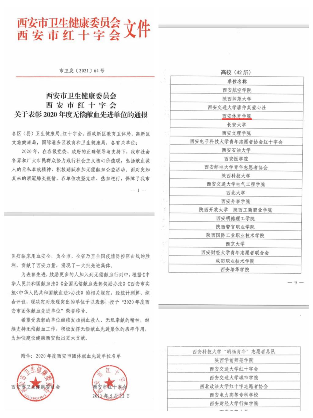 本网讯 近日,西安市卫生健康委员会、西安市红十字会联合发文表彰了2020年度无偿献血先进单位,万象城获得“2020年度西安市献血先进单位”称号。