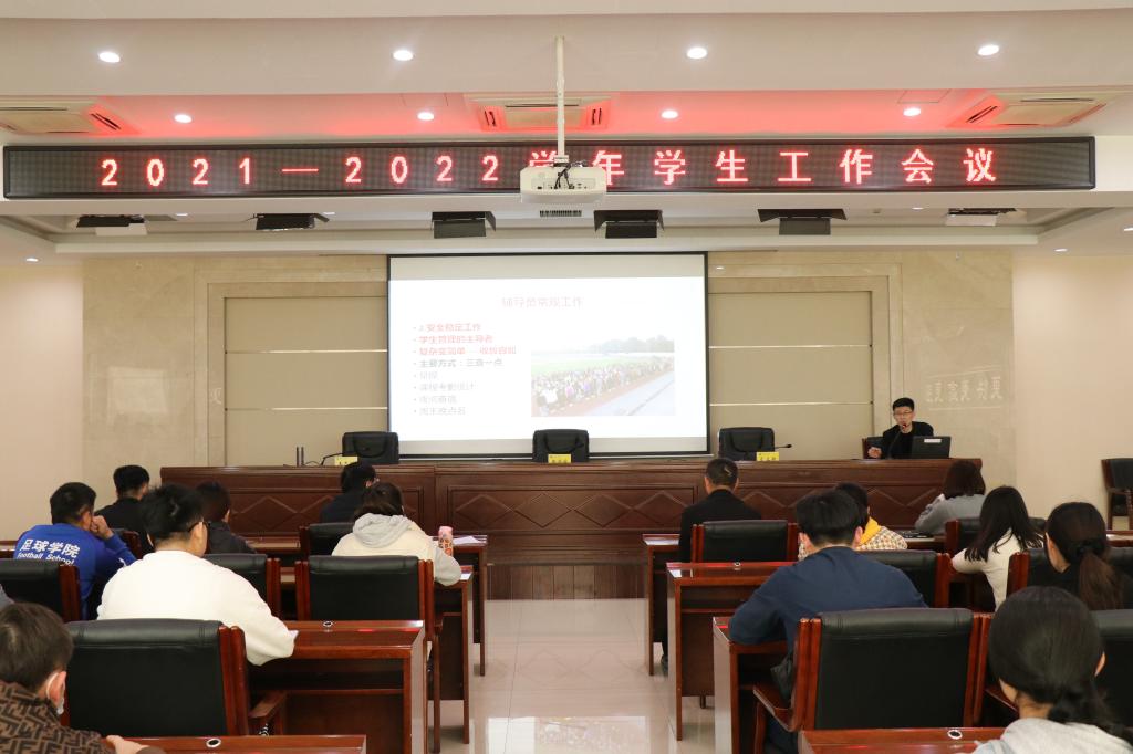 本网讯 11月15日下午,万象城在6楼报告厅召开2021-2022学年第一学期学生工作会议,党委书记黄道峻、党委副书记文立新出席,学工部全体人员、全体专兼职辅导员参加了此次会议,会议由文立新主持。