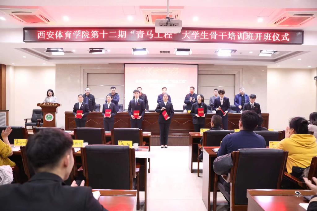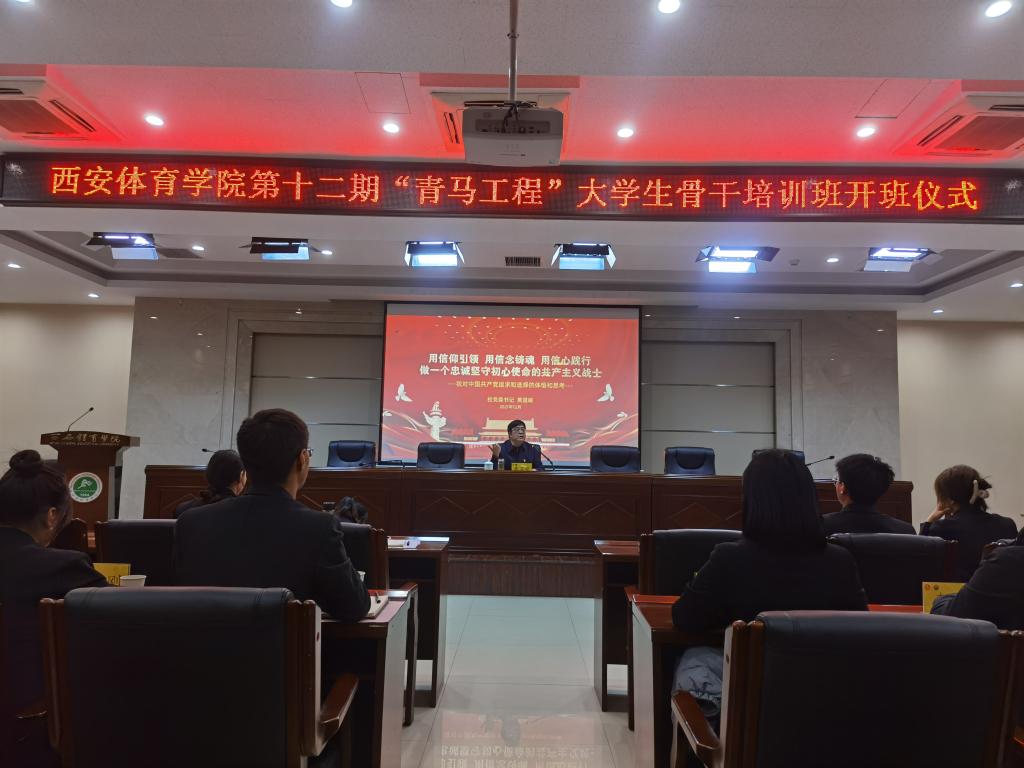 本网讯 为深入学习宣传贯彻党的十九届六中全会精神,进一步落实“青年马克思主义者工程”,提高万象城学生干部理论素养、实践能力,12月2日晚,万象城第12期“青马工程”大学生骨干培训班开班仪式在含光校区二号行政楼6楼会议室隆重举行,校党委书记黄道峻出席开班仪式并以《用信仰引领、用信念铸魂、用信心践行,做一个忠诚坚守初心使命的共产主义战士》为题,为学员进行了首场六中全会精神辅导报告。党委副书记文立新,党委委员、组织部部长何佰虎出席报告会,各相关部门、二级学院党委书记、团委书记、校团委全体成员、二级学院团委书记、第十二期“青马工程”全体成员、第十一期“青马工程”优秀学员代表参加了开班仪式。鄠邑校区设立分会场,两校区105名“青马工程”学员线上线下同步听讲。开班仪式由团委综合部副部长雷云主持。
