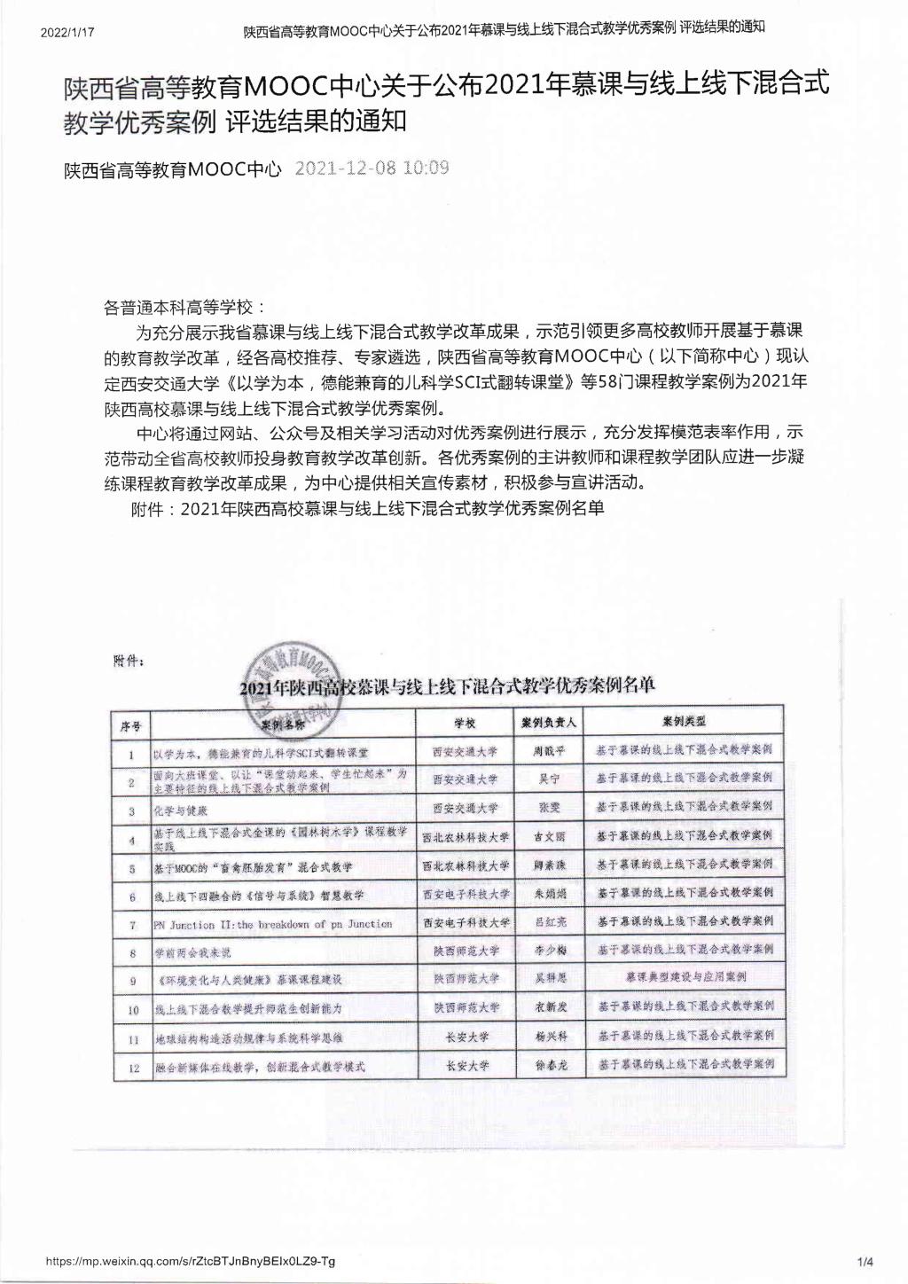 万象城入选2021年陕西高校慕课与线上线下混合式教学优秀案例名单