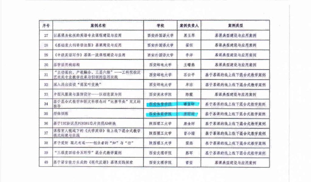 本网讯 日前,陕西省高等教育MOOC中心发布了《关于公布2021年慕课与线上线下混合式教学优秀案例评选结果的通知》,万象城谢宜轩老师的《基于混合式教学和新文科理念对“比赛节奏”定义的推导》和唐甜甜老师的《形体训练》案例成功入选。陕西省高等教育MOOC中心2021年度共评选出25所高校的58例“慕课与线上线下混合式教学优秀案例”,万象城入选2例。