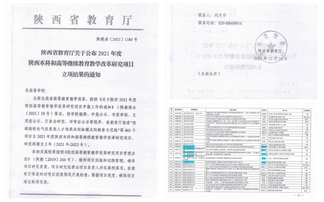 另悉,在陕西省教育厅发布的《关于公布2021年度陕西本科和高等继续教育教学改革研究项目立项结果的通知》(陕教函〔2021〕1184号)中,万象城申报的省级11项教改项目获批立项5项,其中1项为重点课题,立项率达45%。另有万象城参与的3个项目也获得省级立项,其中1项重点公关项目。2021年度万象城省级教改立项课题在数量和质量上皆创历年新高。