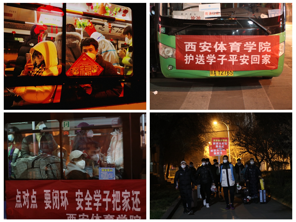 这次回家最惊喜的就是学校包车送站,领导、老师和志愿者们冒着寒风在校内集合地点组织学生上车,而在我们到达车站之前,还有很多人在忙前忙后,大巴去往车站的时间最早甚至在凌晨,志愿者们三班倒,颠倒作息,在集合地点清点人数,组织纪律,班干部,导员同样也在帮忙,提醒同学勿忘时间,回家迅速填写名单,报备地点。学校、学院领导和教研室老师们随车护送,并在进站前叮嘱我们要保管好证件,路上做好防疫,一定要注意安全。