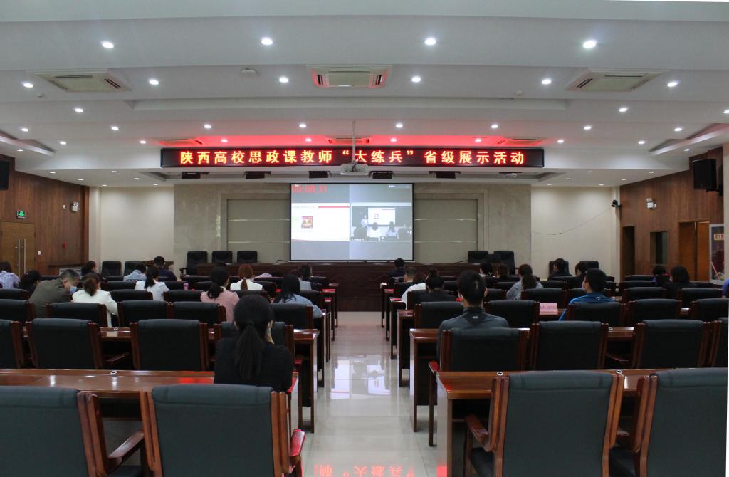 本网讯 4月26日,陕西省高校思政课教师“大练兵”省级展示活动隆重举行。我院组织师生在2号综合办公楼进行线上观摩,在校领导、思政课建设领导小组成员和部分思政课教师、各二级学院教师和学生代表参加了观摩活动。