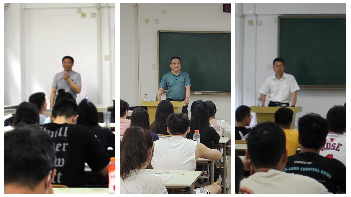 党委副书记文立新(左)、高玉峰(中)、杨芳乾(右)为学生授课