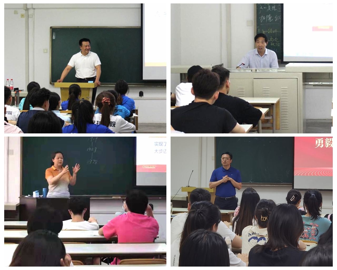 副校长陈彦(左上)、刘新民(右上)、谢英(左下)、张卫国(右下)为学生授课