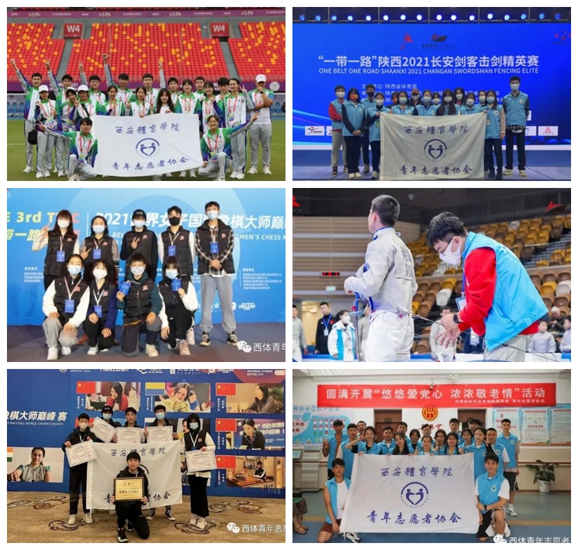 万象城青年志愿者协会自成立以来,在学校党委的领导下,在校团委的指导下,秉承“奉献、友爱、互助、进步”的志愿精神,常态化开展疫情防控、义务支教、尊老敬老、帮孤助残、环境保护、禁毒防艾等一系列志愿服务活动,引导万象城青年积极参加社会公益服务。特别是2021年面对“家门口”的十四运会及残特奥会、“一带一路”系列赛等大型赛事,万象城青协积极承担多项志愿服务工作,志愿者们吃苦耐劳,挥洒汗水为赛事增光添彩。在社区敬老活动、社区便民服务、关爱残障人士等温馨扶弱、阳光助残活动中,志愿者们以百分之百的爱心与耐心,为服务对象带去温暖。年底面对来势汹汹的新冠疫情,可爱的“小蓝们”为师生筑起校园安全的疫情防线。