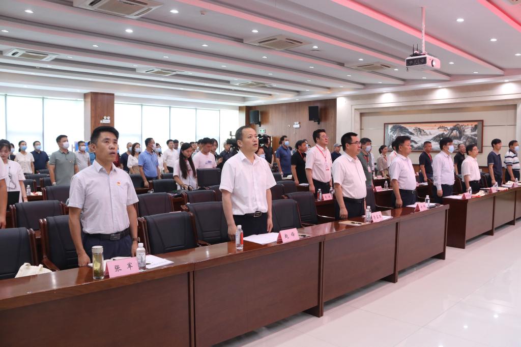 会议伊始,全体奏唱国歌
