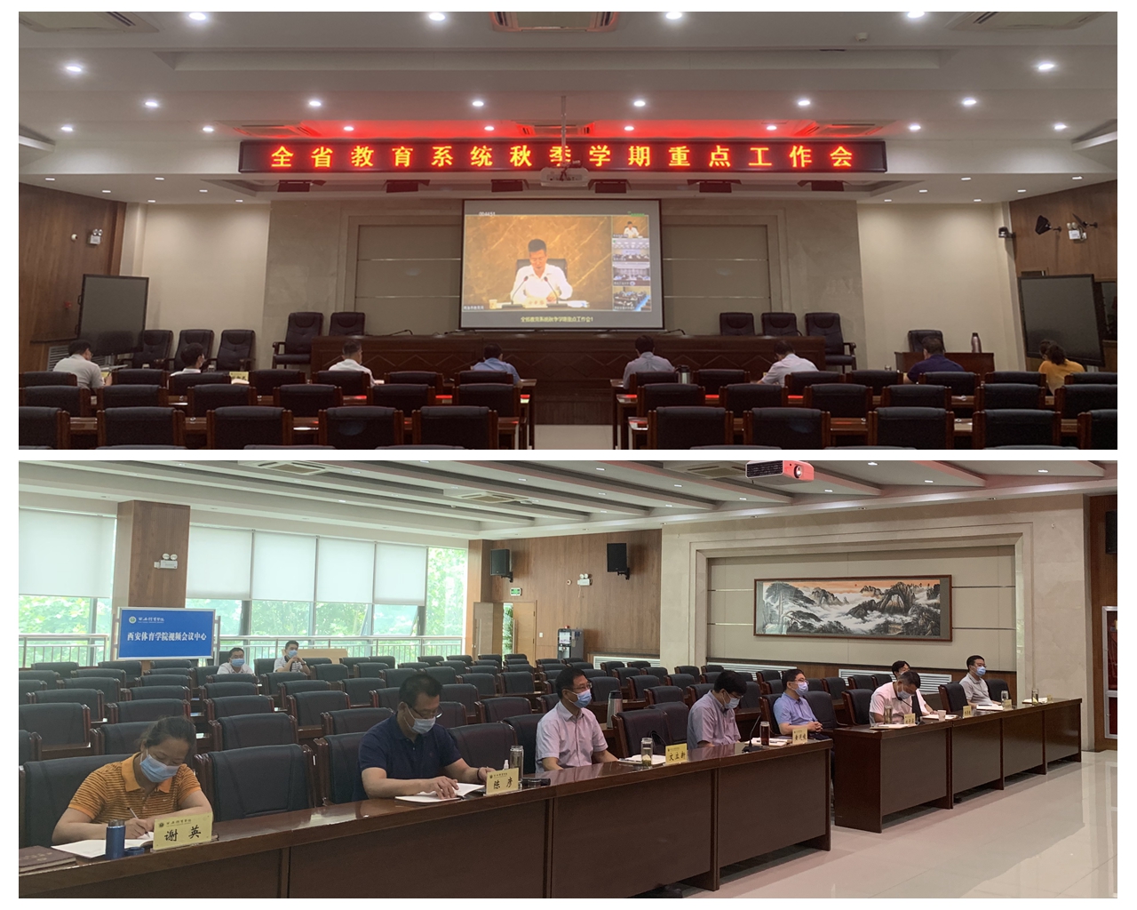 本网讯 8月24日,省委教育工委、省教育厅召开陕西省教育系统秋季学期重点工作视频会议。省政府副省长方光华出席会议,省委教育工委书记王建利主持会议并作总结,省委教育工委副书记、省教育厅厅长刘建林传达有关会议和讲话精神。万象城全体校领导参加会议,并安排学校疫情防控及秋季开学有关工作。