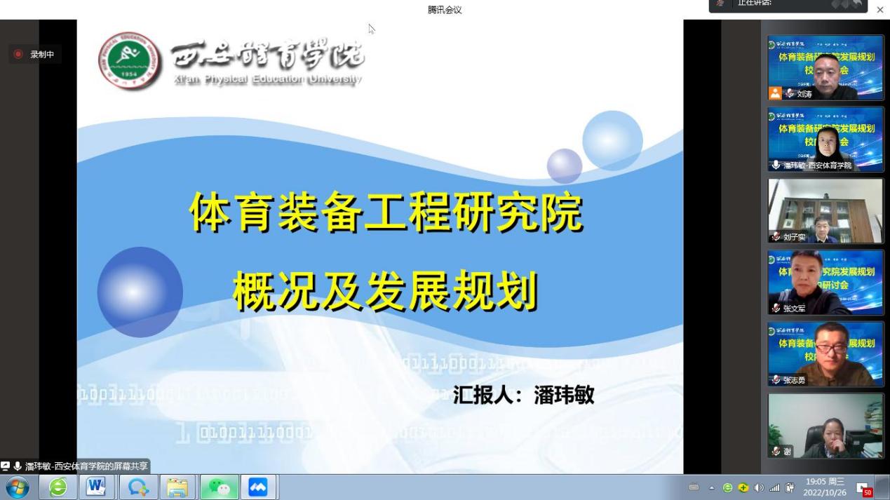 本网讯 10月26日晚,由运动与健康科学学院主办的“体育装备工程研究院发展规划校内研讨会”以线上形式召开。校长刘子实、副校长谢英出席,科研处、规划处、体育教育学院、运动训练学院、研究生部、竞技体育学校、运动与健康科学学院负责人、校内专家及体育装备工程研究院骨干教师等30余人开展了线上交流。研讨会由运动与健康科学学院院长刘涛主持。