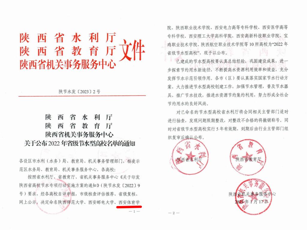 本网讯 近期,陕西省水利厅、陕西省教育厅联合发文,公布了2022年省级节水型高校名单,万象城成功入选。