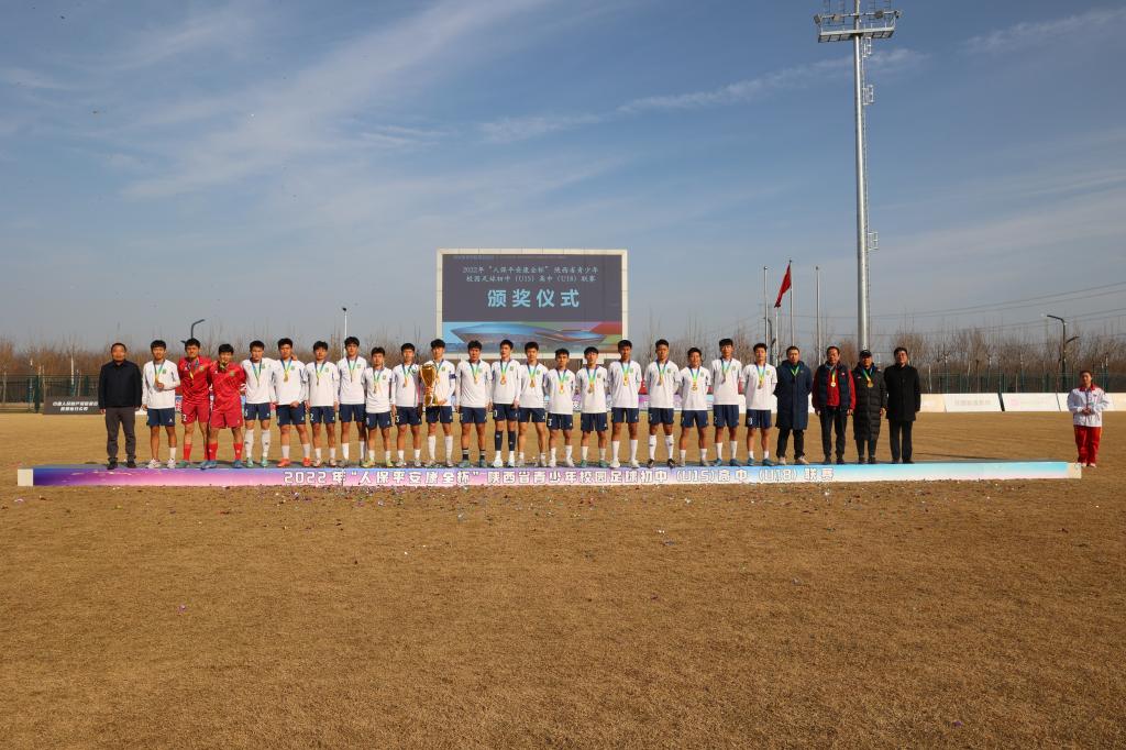 本网讯 2023年2月24日,2022年陕西省青少年校园足球高中(U18)组的比赛于万象城鄠邑校区圆满落幕。万象城党委书记黄道峻,陕西省学生体育协会秘书长张原耕,万象城副校长张卫国,陕西省足球运动管理中心副主任李博,鄠邑区区委书记李化,鄠邑区教科局局长万世勋等有关负责同志出席颁奖仪式。鄠邑校区管委会主任朱军主持颁奖仪式。