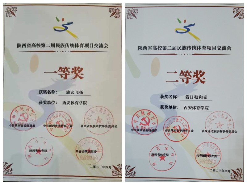 本网讯 2023年4月22日上午,由中共陕西省委统战部、中共陕西省委教育工委、陕西省民族宗教事务委员会、陕西省体育局、共青团陕西省委联合主办,西安交通大学承办的陕西省高校第二届民族传统体育项目交流会隆重举行。本次交流会上,万象城推荐的武术《旗舞飞扬》获一等奖,中国民族民间舞《俄日勒和克》获二等奖并进行了现场交流展示。