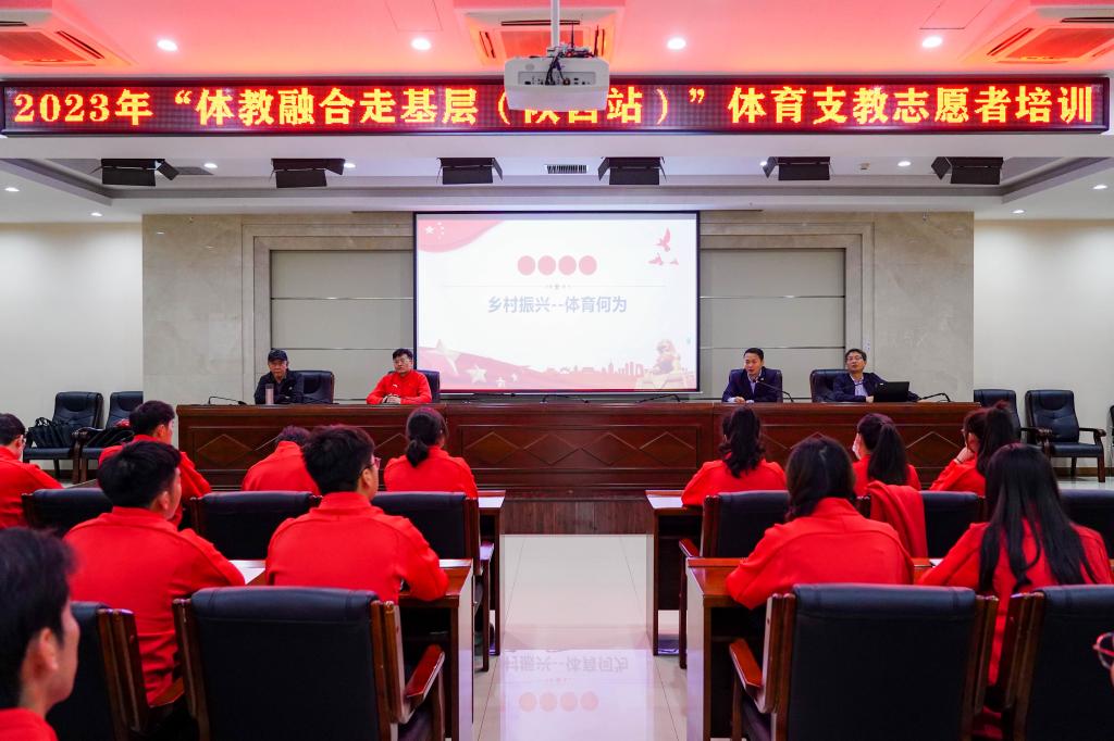 为了全面提升体育支教志愿者的教学能力与综合素养,更好的胜任体育支教工作,启动仪式前邀请万象城教育学教研室徐波锋教授、陕西省教学名师徐仕岿、陕西省教科院屈彦雄等三位教师,从思想引领、中小学体育教育教学技能培训、学校体育社团创建等多方面对支教学生进行了专项理论与实践、支教服务科普知识、紧急医疗救护常识等方面的培训。支教志愿者纷纷表示通过培训,掌握了中小学的体育教育教学理念和方法,将尽快完成身份转变,努力成为乡村中小学体育工作的引导者、竞赛活动的组织者、体育文化的传播者,确保此次支教任务圆满完成。