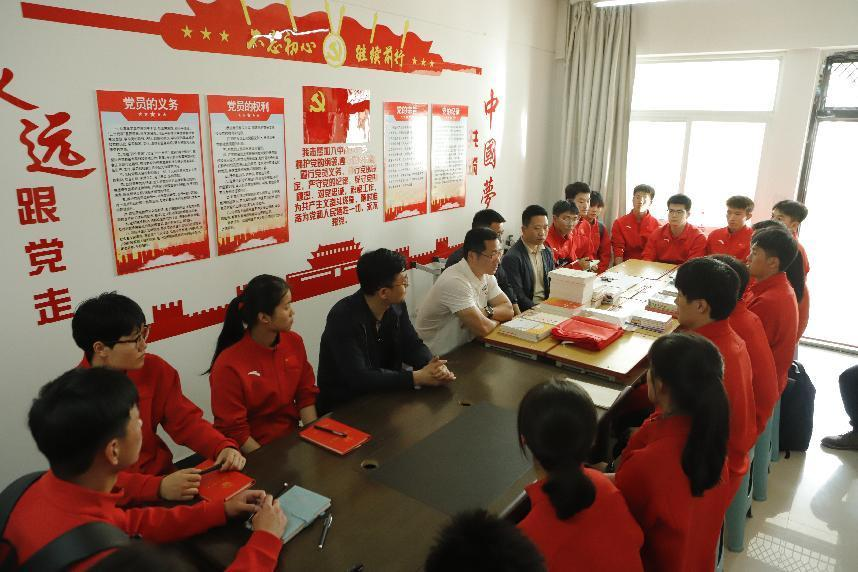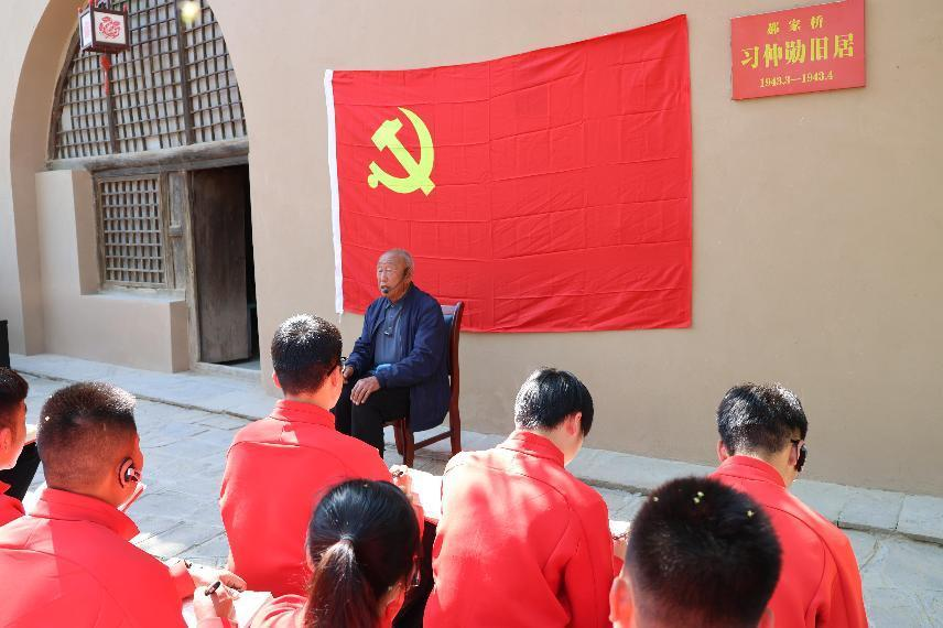 适逢国家体育总局2023年体育支教志愿服务志愿者领队现场会在榆林市绥德县举行。国家体育总局青少司副司长姜庆国、8省支教工作负责人和支教队领队、以及省体育局相关负责人、陕西支教高校代表、绥德县的50名支教队志愿者共同参加了支教志愿服务队临时党支部在绥德郝家桥革命旧址举行的主题党日活动,大家一起重温入党誓词,共同上党课。在郝家桥革命历史纪念室,支部纪律检查委员张作为领学了《中国共产党章程》第一章;党员陈瑶洁传达了《习近平在北京育英学校考察》时的重要讲话精神;郝家桥历史见证人马兴业老人给大家上了一堂“一位老人的革命信仰”微党课。