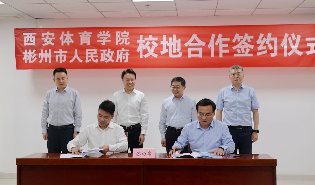 本网讯 6月9日上午,校长刘子实带领党委校长办公室主任张军、教务处处长张葆欣、竞技体校校长张文军、体育教育学院院长马海涛、运动与健康科学学院院长刘涛等一行7人与彬州市人民政府签订校地合作协议。