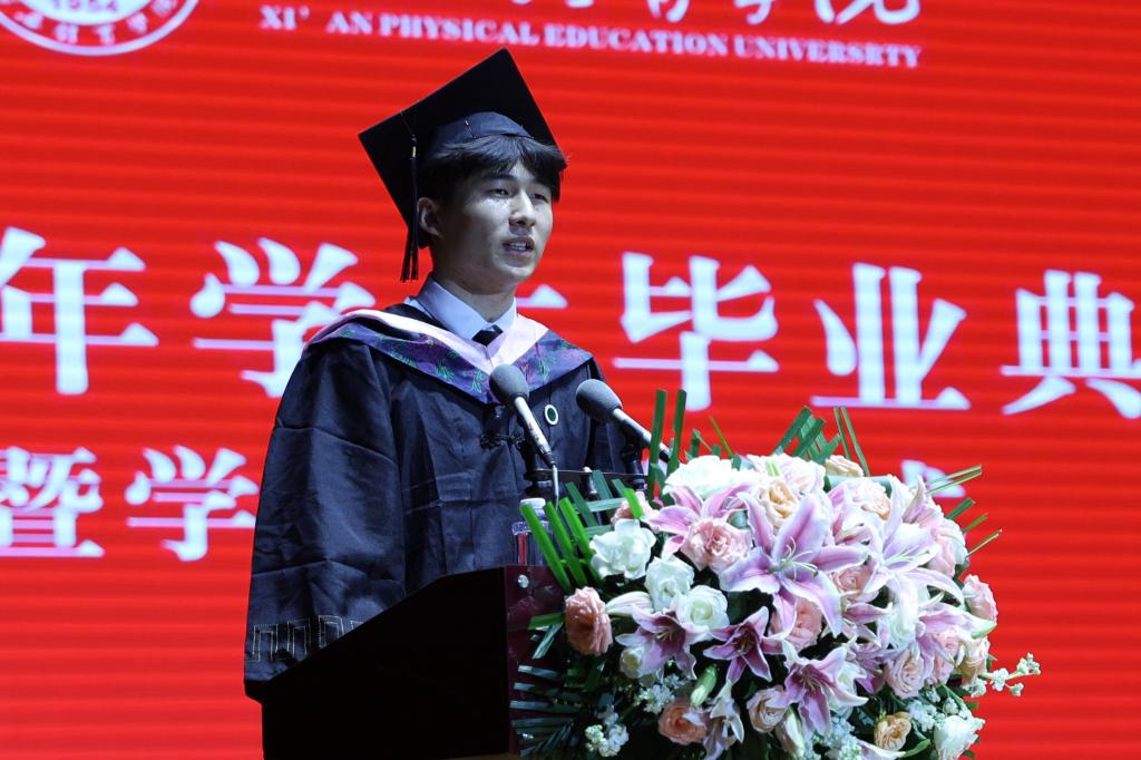 刘子实以《向上向善向美一起向未来》为题,为2023届毕业生送上殷殷嘱托和美好祝福。希望同学们坚定不移听党话、跟党走,怀抱梦想又脚踏实地,敢想敢为又善作善成,立志做有理想、敢担当、能吃苦、肯奋斗的新时代好青年,让青春在全面建设社会主义现代化国家的火热实践中绽放绚丽之花!一是江海不舍细流。要把个人奋斗的“小目标”融入党和国家事业的“大蓝图”,在学习中提升自我、在实践中锤炼自我、在奋斗中成就自我,干一行、爱一行、精一行,从点滴做起,从小事做起,绵绵发力,久久为功,彰显体育人精益求精、奋力拼搏的昂扬姿态,在体育强国、教育强国、健康中国的广阔天地中,一显身手,有所作为。二是时时心怀敬畏。走下赛场、走出校园、步入社会,更要敬畏“仁、义、礼、智、信”等中华民族传统美德,敬畏现代社会法律法规,坚守慎独慎微,每日而三省吾身,学会在规则中生存、在秩序中前行、在公平公正中奋斗。三是拥抱美好人生。树立科学的事业观、家庭观、择偶观,无论顺境还是逆境,永远保持积极向上、平和善良,不为困难却步,不向挫折低头,赋予生活以意义,赋予生命以亮色,始终向阳而生、追梦而行,始终心有仁义、肩负重任,度过一个有成色、有温度的幸福人生!