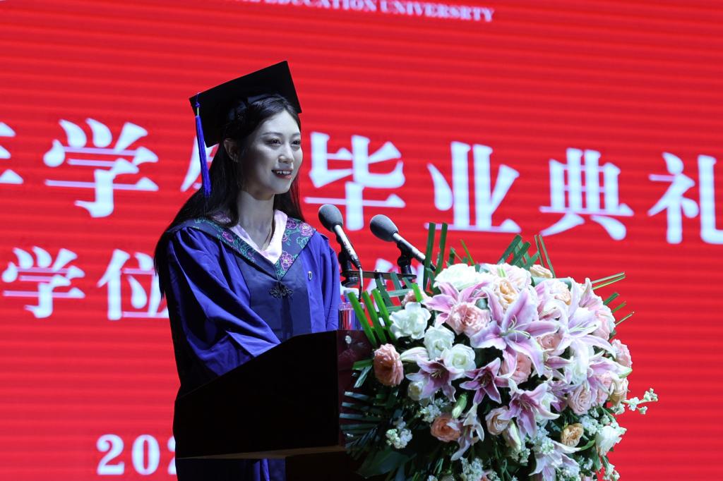 来自研究生部的杨紫璇和艺术学院的牛志远分别代表2023届毕业的硕士研究生和本科生发表了毕业致辞,对母校的辛勤培养、老师的谆谆教诲、同窗的相遇相伴致以最诚挚的感谢。他们代表所有毕业生发出铮铮誓言:将牢记“严谨、创新、团结、拼搏”的万象城校训以“明是非、守原则、怀天下、奋力为”的立身之道,在人生道路上披荆斩棘,在各行各业展现万象城风貌!