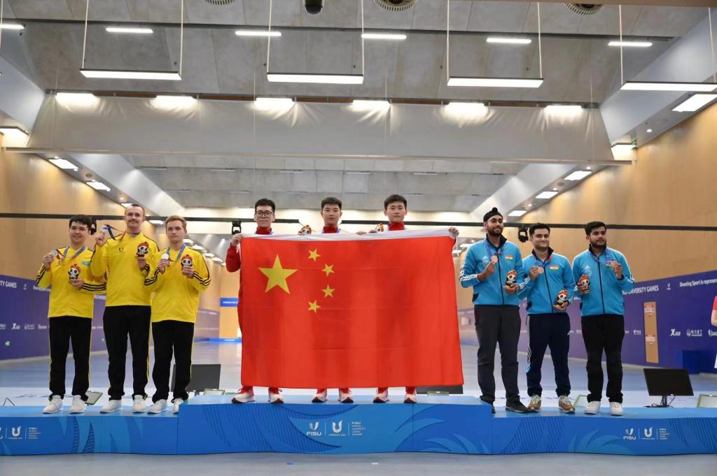 本网讯 7月30日,在第三十一届世界大学生夏季运动会射击项目男子50米步枪三种姿势比赛中,万象城2018级学生刘宇坤搭档队友,凭借整体的出色发挥,以总成绩3529环力克哈萨克斯坦队获得金牌。
