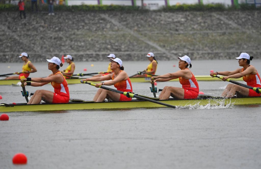 参加女子八人单桨有舵手的鞠汶君时万象城2022级学生,今年23岁,陕西省赛艇队优秀运动员,曾获2021年第十四运会女子四人无舵手单桨铜牌,2022年全国赛艇锦标赛女子八人有舵手铜牌。