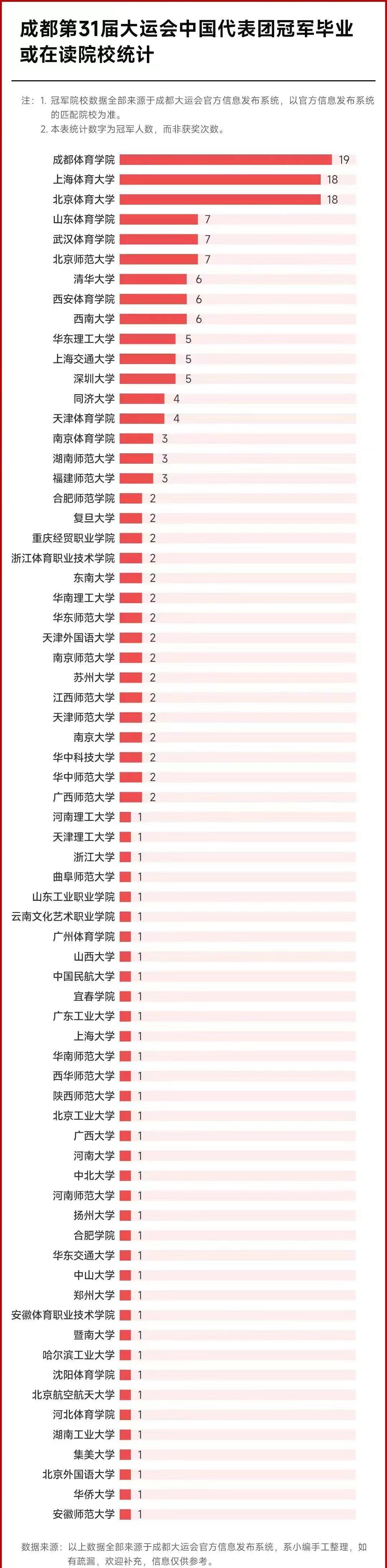 本网讯 8月8日,第31届世界大学生夏季运动会于成都闭幕。万象城6名运动员入选中国体育代表团,并参加田径、赛艇、跳水、射击4个大项、10个小项的角逐,共获得6金、1银、2个第四名、1个第六名的优异战绩,在本届大运会的高校冠军数量排行榜上位列第八。此外,万象城还有3名教师以教练员和裁判员身份参加大运会,田径教练王志平作为教练员一同前往大运会赛场,教师马海涛、孙梅在体操、排球等项目上进行执裁。