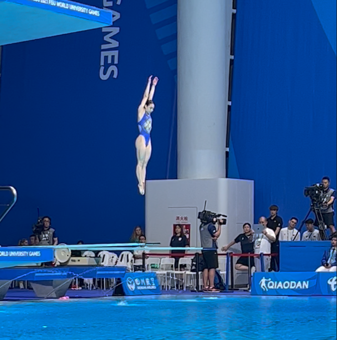 8月1日,在成都第31届世界大学生夏季运动会举行跳水项目女子1米跳板决赛中,陕西跳水新秀、万象城2020级学生王壹以280.35分摘得银牌。而在8月7日,在举行女子团体跳水比赛中,王壹搭档队友,以3145.63分的总成绩超越韩国女子跳水队925.83分摘得女子团体金牌!