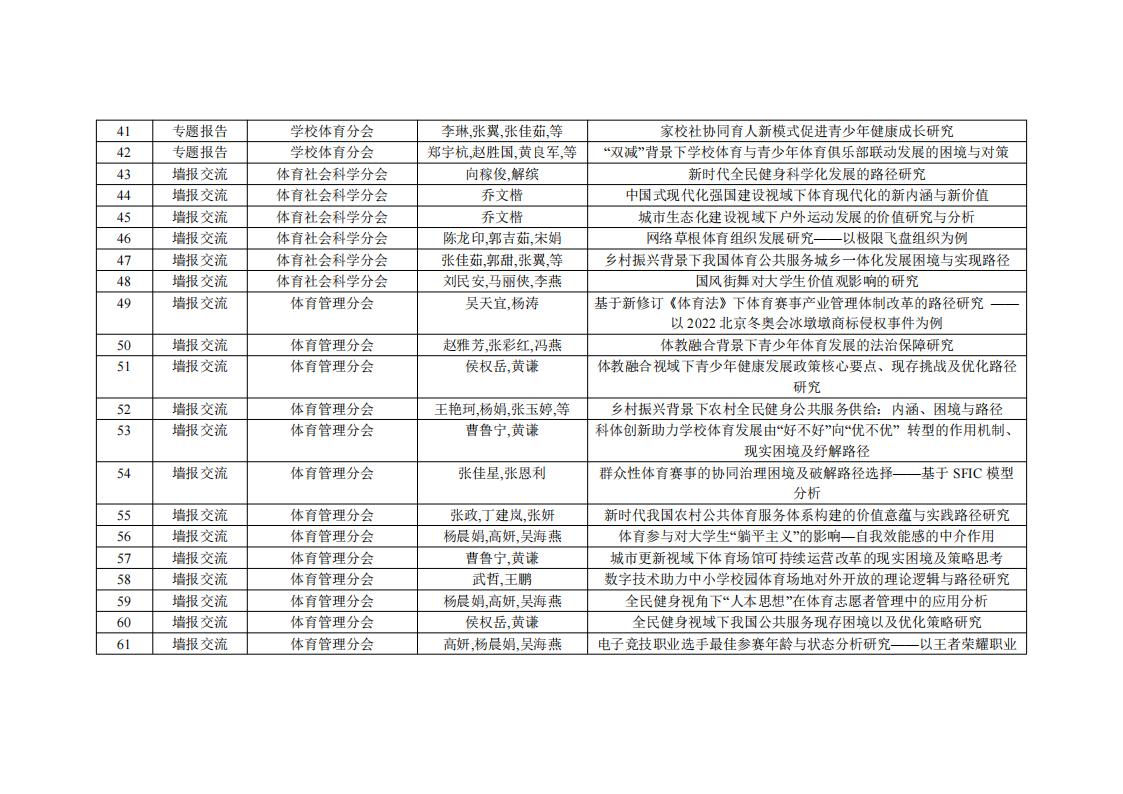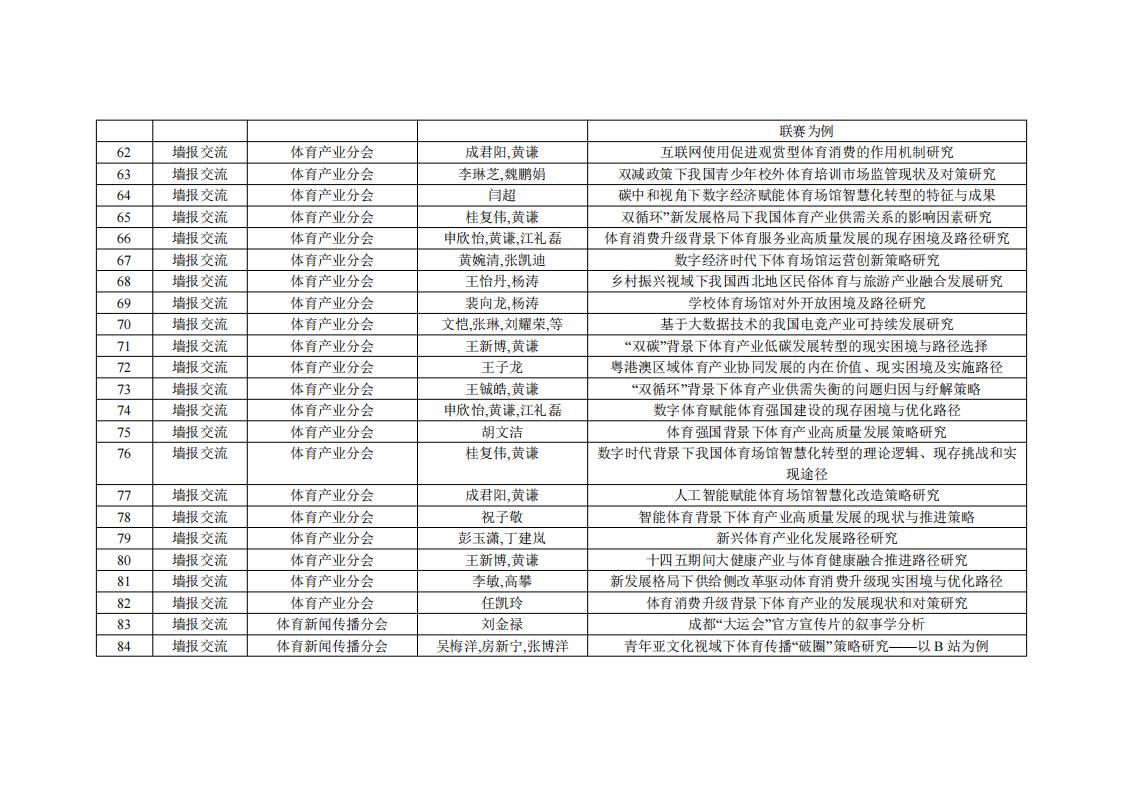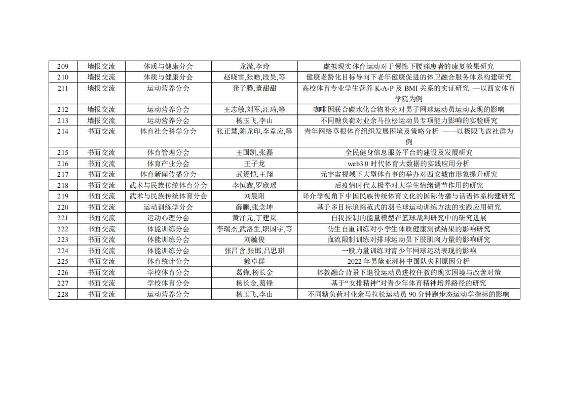 全国体育科学大会是由中国体育科学学会主办的国内最具权威性和影响力、最大规模和最高层次的综合性体育学术会议,是全国体育科技工作者展示最新体育科研成果、科技成果和交流科技信息的盛会,对应着各自学校的科研实力和水平。