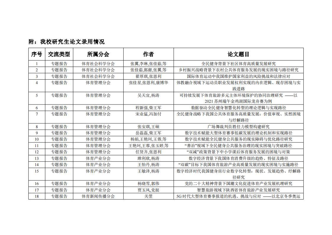 此次万象城研究生在十三届全国体育科学大会所取得的优秀成果,是万象城全面贯彻落实全国研究生会议精神,持续加强研究生教育质量的结果,不仅提升了万象城在全国高校体育学术方面的影响力,也进一步激发了万象城研究生开展体育科学研究的热情和动力。希望研究生以此次科报会投稿为契机,努力学习,开拓创新,再创辉煌!