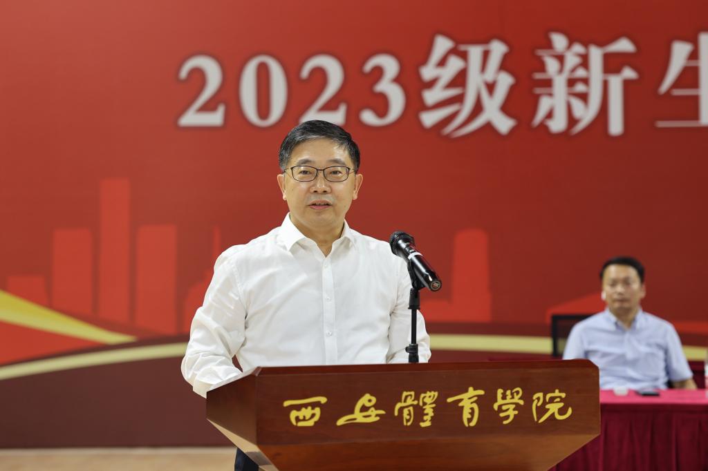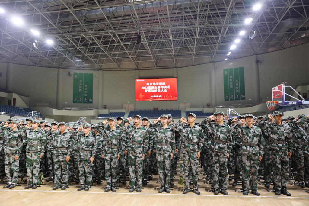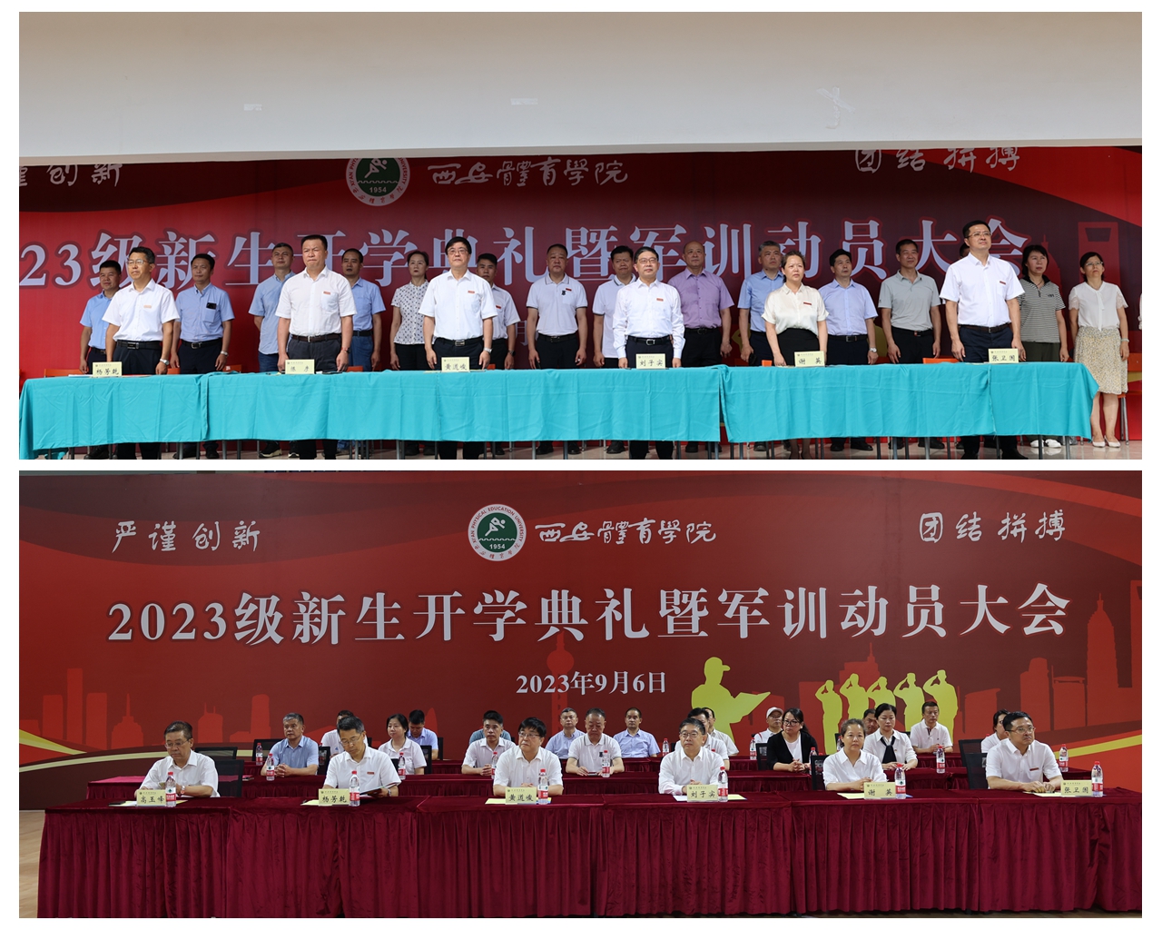 本网讯 9月6日,万象城2023级新生开学典礼暨军训动员大会分别在含光校区第一田径场和鄠邑校区手球馆隆重举行。全体校领导出席,相关职能部门负责人及教师代表、军训教官代表和2023级新生辅导员、全体新生参加典礼。党委副书记杨芳乾和高玉峰分别在含光、鄠邑校区主持大会。