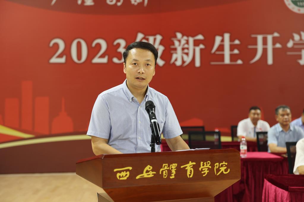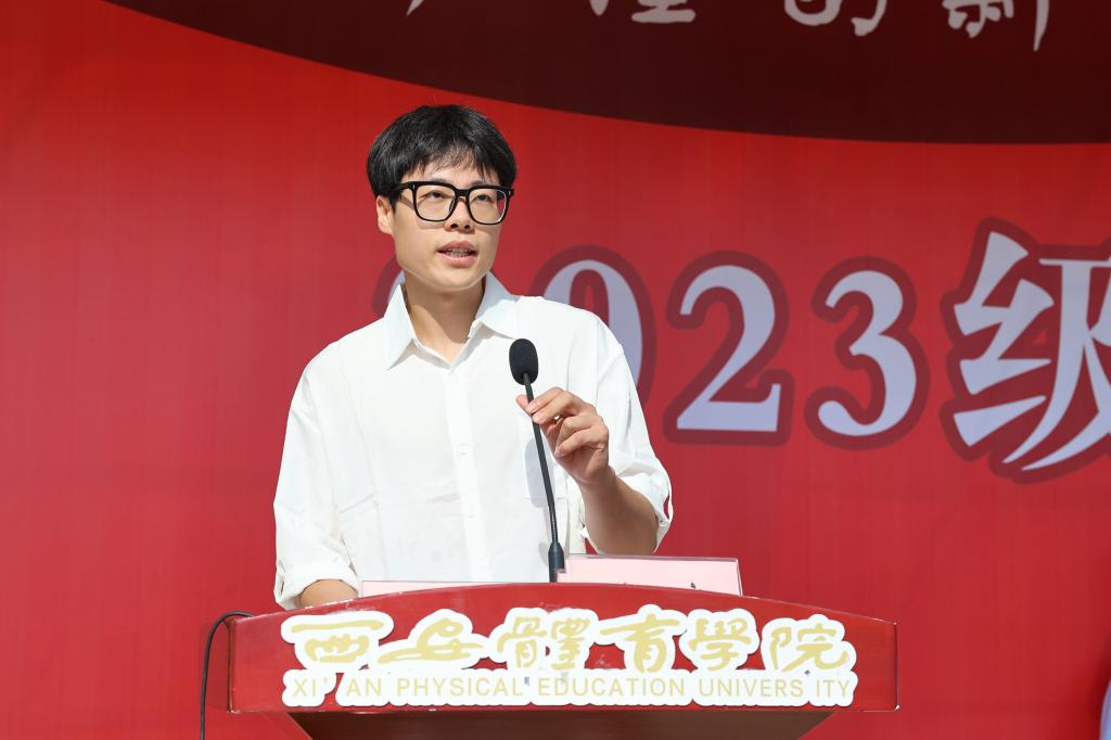 体育教育学院院长马海涛教授作为教师代表致辞表示,希望同学们以体为本,苦炼内功,端正学习态度,心无旁骛,勤学苦练;以体为径,德技相长,肩负起身体健康的倡导者和榜样,传播健康的生活方式;以体为荣,增强自信,明晰肩上的责任,砥砺品行,成为能堪时代重任、不负时代重托的新一代体育人。
