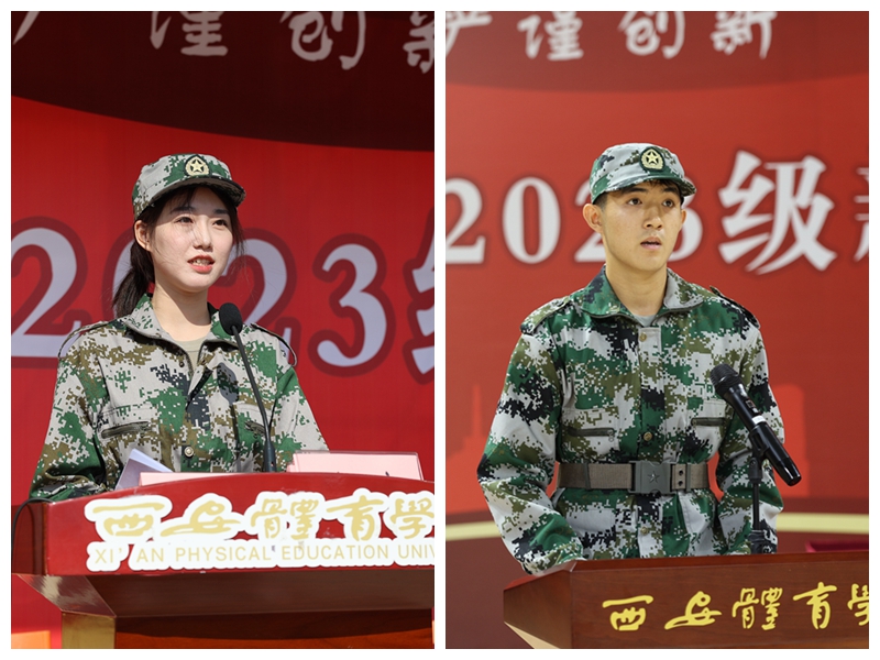 新生代表杜柯瑶带领2023级新生进行了庄严的宣誓并同唱“没有共产党就没有新中国”。2023级新生开学典礼暨军训动员大会在歌声、掌声中圆满落幕。