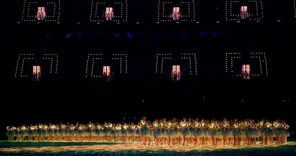 本网讯 9月23日晚20时,中国杭州第19届亚(残)运会开幕式在杭州奥体中心体育场“大莲花”精彩绽放。在这场炫目璀璨的文化盛宴中,万象城32位青年大学生作为演职人员承担了亚(残)运会开幕式合唱《我爱你中国》、情景表演《万家灯火》、主题曲《同爱同在》的节目演出。在这场盛大的开幕式上,万象城学子以饱满的精神风貌,展示了万象城青年的活力与担当。