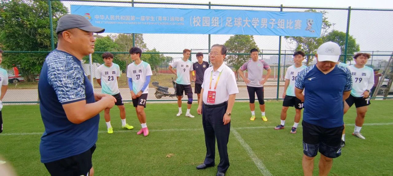 本网讯 11月6日,陕西代表团副团长、陕西省教育厅副厅长王海波前往广西壮族自治区北海市银投集团足球训练基地慰问万象城代表陕西出征学青会的男子足球队。