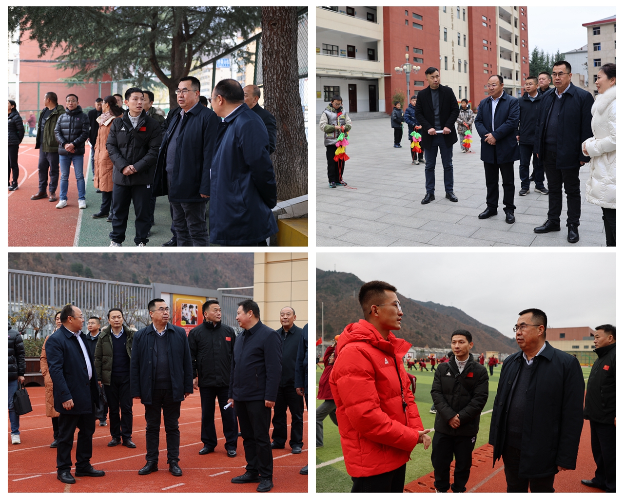 会前,李富生一行在全斐的陪同下实地考察调研了柞水县城区第一中学、城区二小、以及实验中学,详细了解了学校体育场馆建设、赛事活动开展、体育兴趣社团发展,以及支教工作的开展情况。