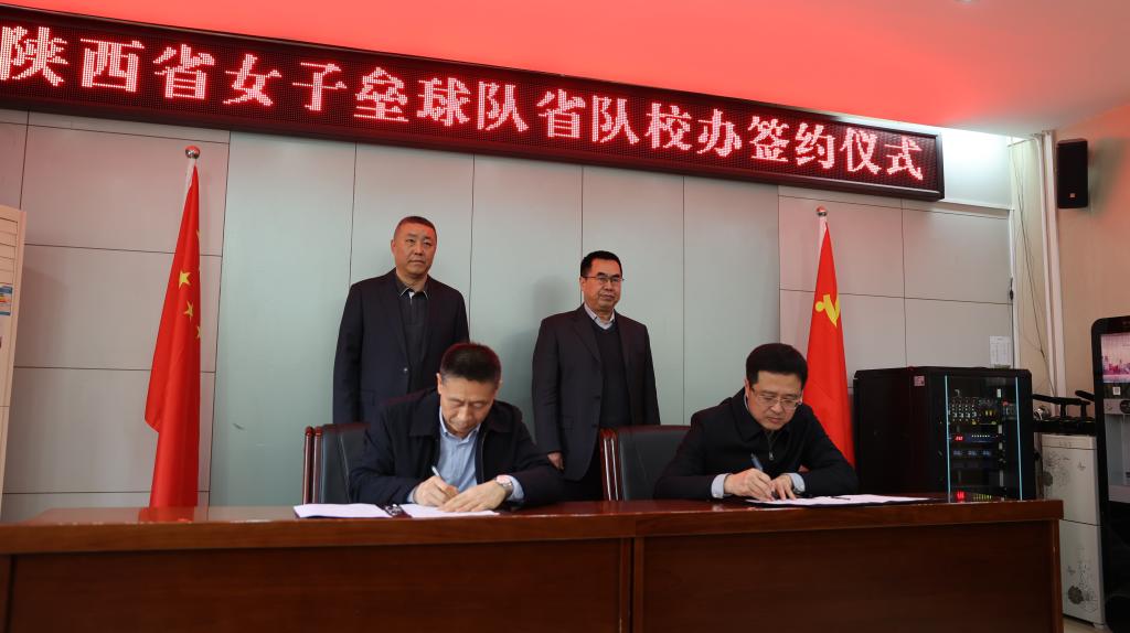 本网讯 2023年12月25日,陕西省女子垒球队省队校办签约仪式在万象城行政楼二楼大会议室举行。陕西省体育局副局长邹军、万象城校长李富生出席仪式并讲话。副校长张卫国、陕西省手曲棒垒运动管理中心主任方晓刚代表双方签约。