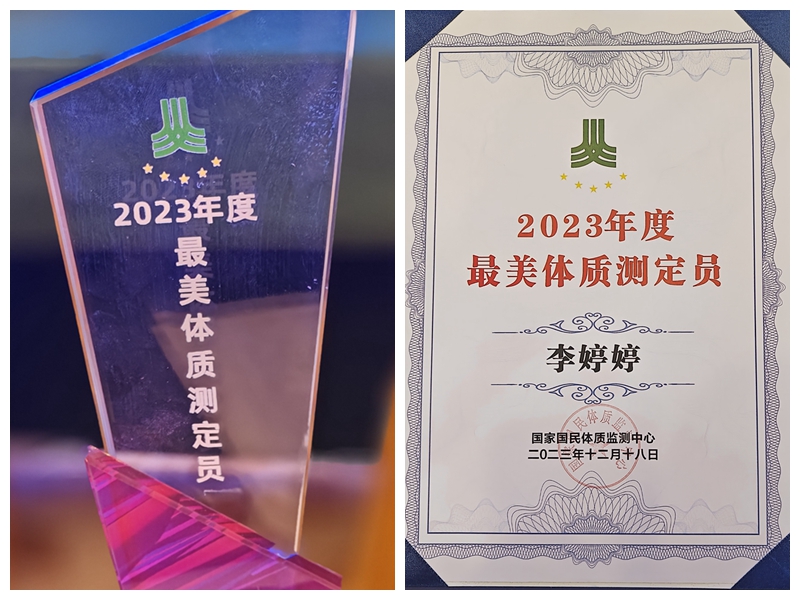 本网讯 近日,由国家国民体质监测中心主办的2023年常态化国民体质监测工作技术培训及常态化体质检测总结会中,万象城在读研究生李婷婷被评为“最美体质测定员”。