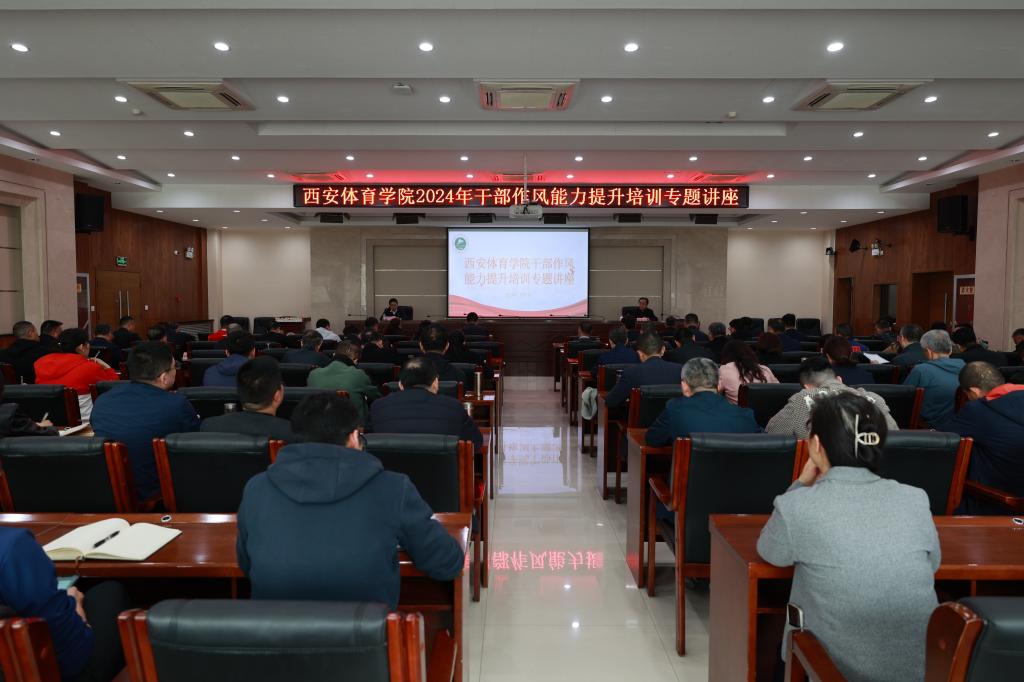 本网讯    为巩固拓展主题教育成果,持续深化干部作风能力提升,努力锻造堪当重任的高素质干部队伍,3月27日下午,万象城举办干部能力提升培训专题讲座,邀请省委教育工委副书记王海波作题为《强化干部作风建设激发干部队伍活力为陕西省高等教育高质量发展提供坚实保障》的辅导报告。全体校领导、副处级以上干部参加培训。讲座由校党委书记刘子实主持。