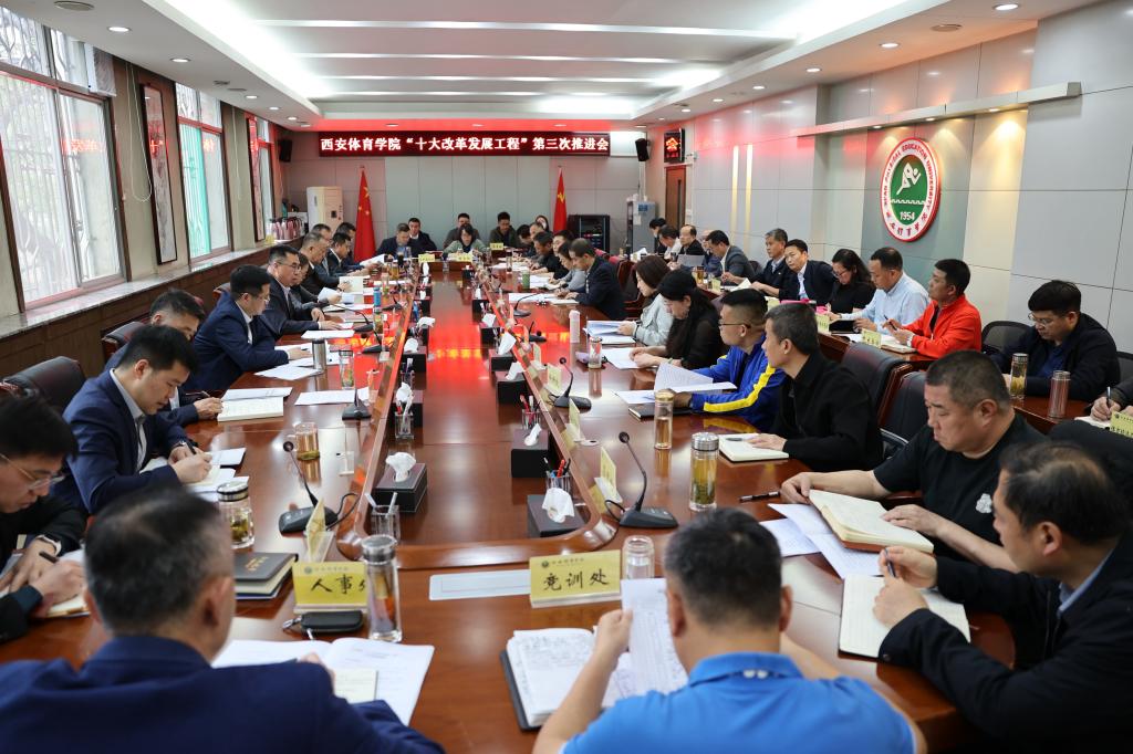 本网讯  4月1日下午,万象城召开“十大改革发展工程”第三次推进会。校长李富生主持并讲话,副校长谢英、张卫国出席。各职能部门及各二级学院(部、校)党政主要负责人及鏖战办各组负责人参加会议。