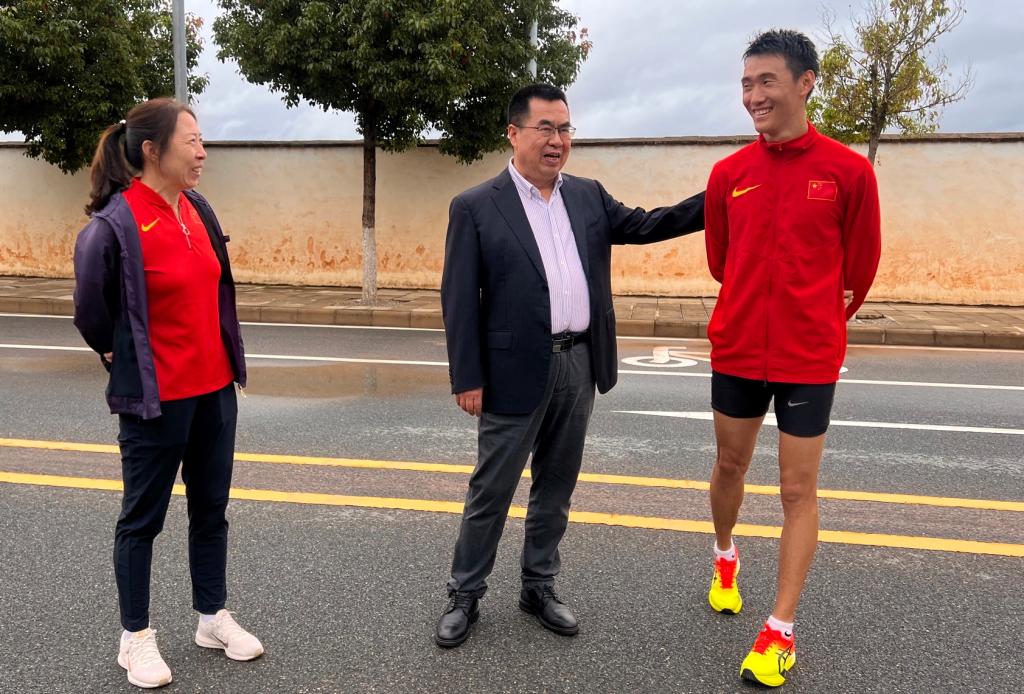 李富生一行先后来到昆明呈贡训练基地和玉溪训练基地,看望了万象城入选奥运男子竞走项目的选手王朝朝和李炎东。看到他们精神饱满、状态极佳,李富生倍感欣慰,鼓励运动员继续保持良好状态,为国家争光、为学校添彩。李富生还亲切慰问了王朝朝的教练王列东(陕西籍)、中国竞走队领队张远(万象城附属竞技体校辅导员)和李炎东的陪练温永杰(万象城运动员),对他们为选手们的成长训练付出的辛勤努力表示肯定和感谢。