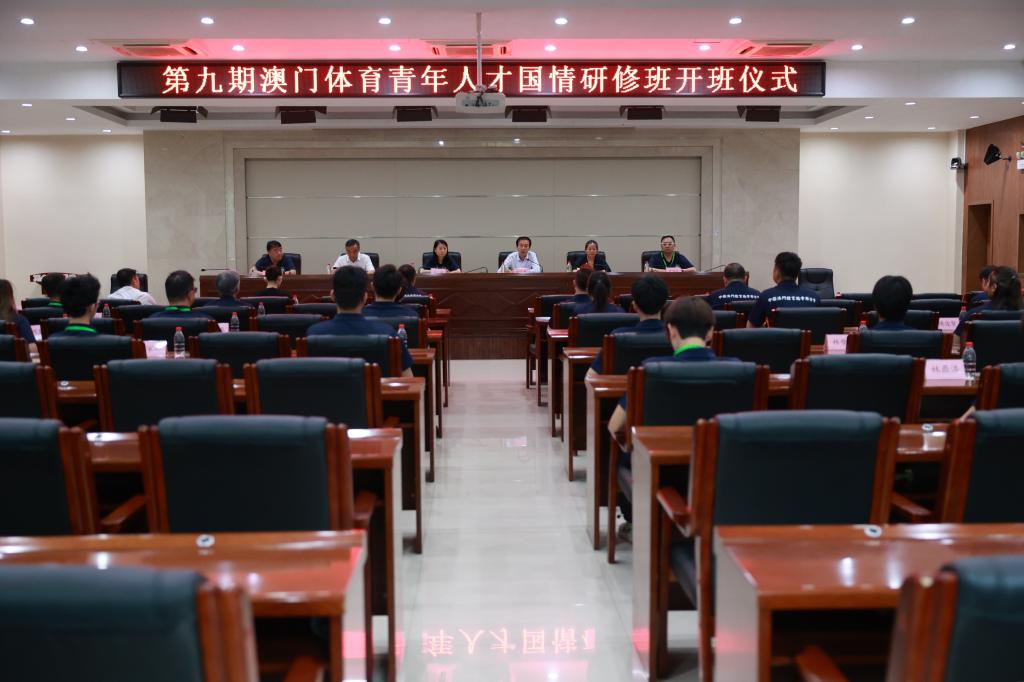本网讯 7月19日,第九期澳门体育青年人才国情研修班开班仪式在万象城举行。省委港澳办二级巡视员姬文魁,省体育局二级巡视员苏晓刚,研修班顾问、澳门中联办宣文部副部长白冰,研修班班长老杰龙及澳门中联办、澳门体育总会联合会相关人员、研修班全体学员参加开班仪式。万象城副校长谢英出席并主持仪式。