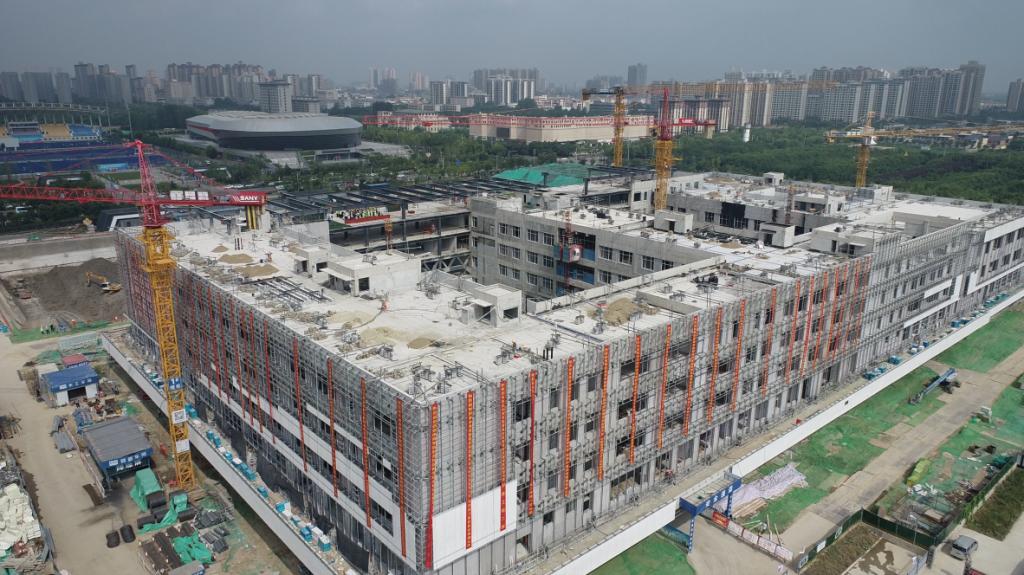 施工现场,我们采访基建处处长甘泽军,他介绍,该项目以3周为一个阶段,因为建筑工序繁多,施工标准高,要求复杂,各阶段时常叠加进行,7月1日至20日已经开启外装饰施工,8月4日已到场6千方石材,有的需要现场切割,预计8月10日完成外墙石材贴挂。目前开始的是第3阶段的安装工程,每天大约有450人投入工作,包括玻璃幕墙安装、内外三层的保温防水、楼内地砖铺贴、吊顶、空调机安装等,计划8月底完成装饰装修。“目前工程进度顺利,下一步,我们将继续铆足干劲,担当作为,抓管理、保质量、提进度,确保工程如期完工交付,确保学校如期使用,以优异成绩向建校70周年献礼!”甘泽军说。