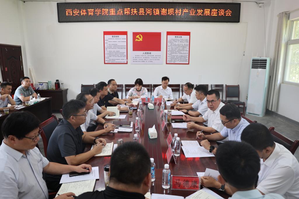 在谢坝村村委会会议室召开的产业发展座谈会上,汉滨区区委常委、宣传部部长冯荣平对万象城长期以来支持汉滨区教育、体育、医疗等方面的发展表示感谢。他提出建立产学研基地等建议,希望西安体院在体育赛事、生态旅游、全民健身、体育康养等方面为汉滨区共绘体育强区发展蓝图提供大力支持。