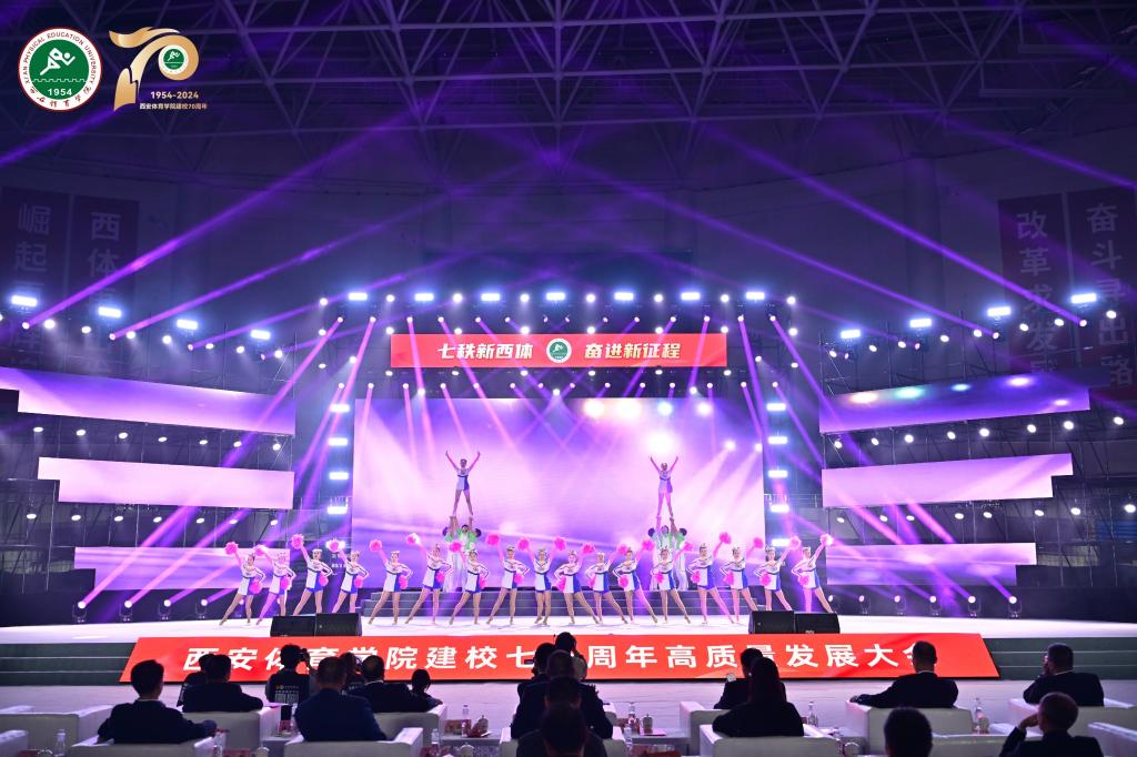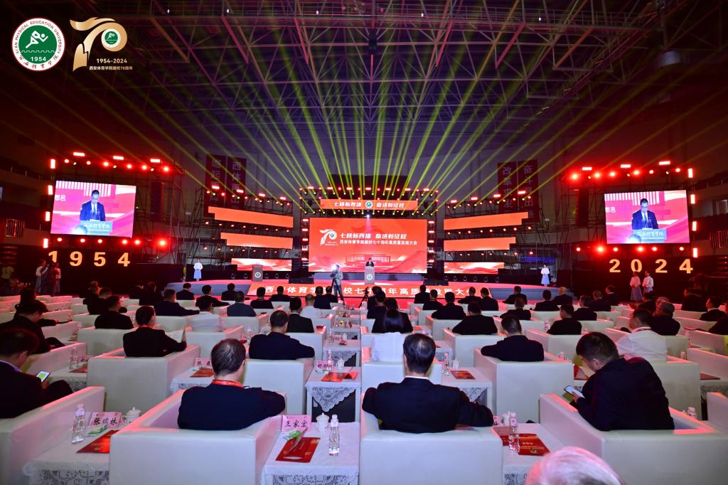 大会在激昂的国歌声中拉开帷幕。陕西省委副书记邢善萍出席并讲话。陕西省副省长徐明非,国家体育总局副局长刘国永,东亚奥协主席杨树安等领导出席。国家体育总局科教司司长陈志宇宣读国家体育总局贺信。校党委书记刘子实主持大会,校长李富生作报告,北京体育大学校长张剑、西北大学党委书记蒋林、日本大阪体育大学理事长野田贤治先后致辞。教师代表、省教学名师苟波教授,学生代表、竞走学院岗拉美多,校友代表、国家体育总局原一级巡视员曹康先后发言,共同表达对万象城建校70周年的祝福。