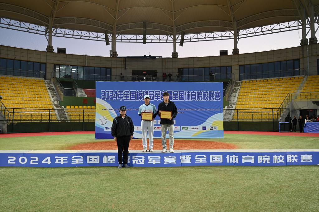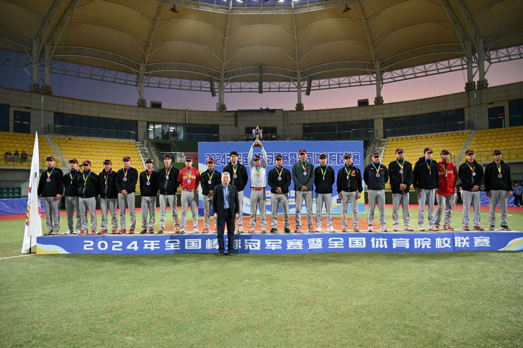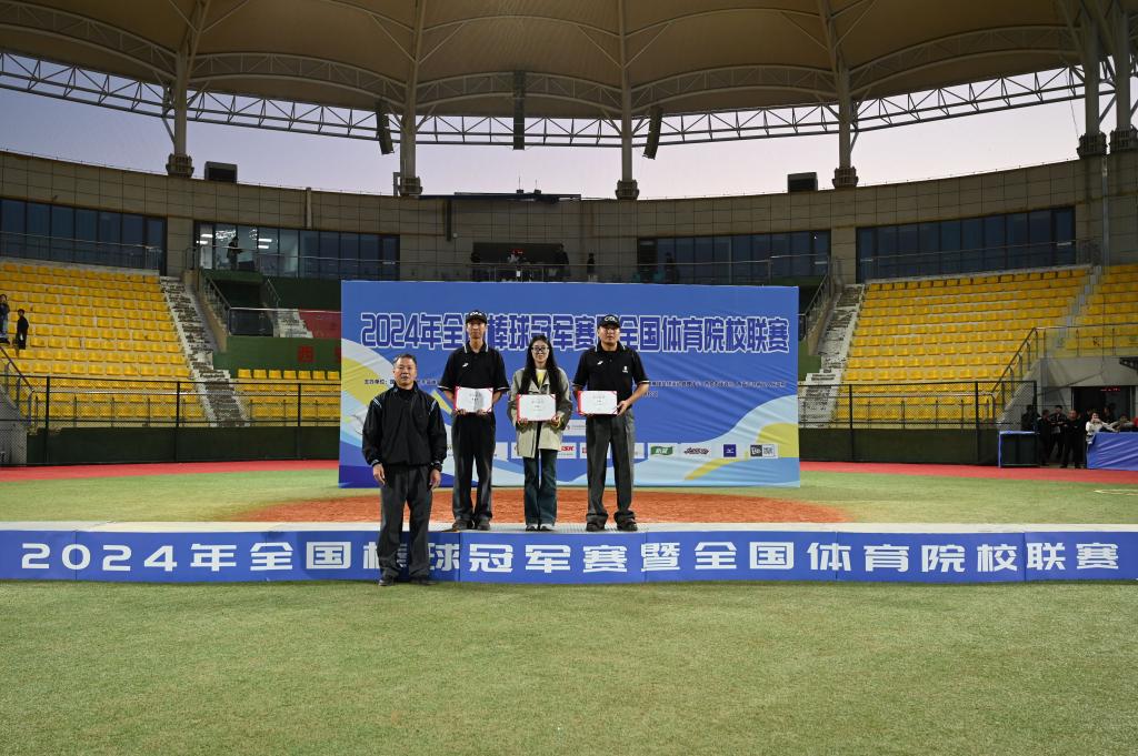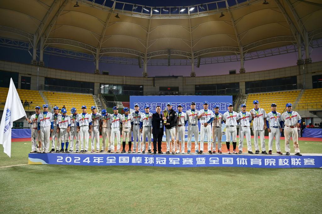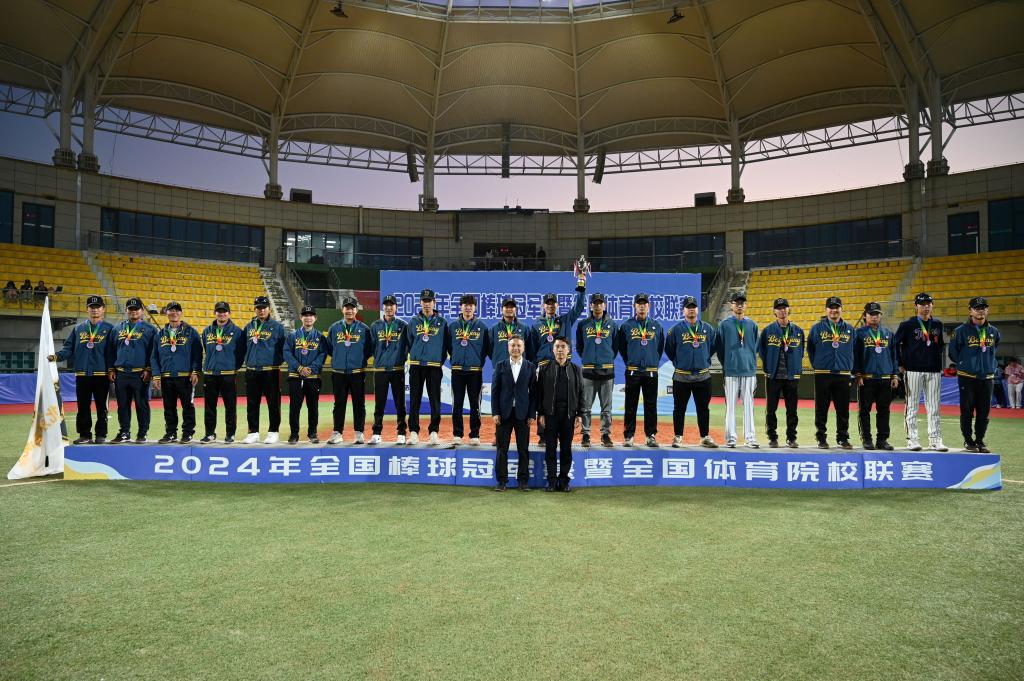 本网讯 10月27日,2024年全国棒球冠军赛暨全国体育院校联赛在万象城鄠邑校区棒球场圆满闭幕。中国棒球协会技术委员会主委、赛事技术委员长高琦,中国棒球协会裁判员委员会执委、赛事裁判长刘军,校长李富生,副校长张葆欣,党委校长办公室主任张军,竞赛训练处处长许伟等出席闭幕仪式。