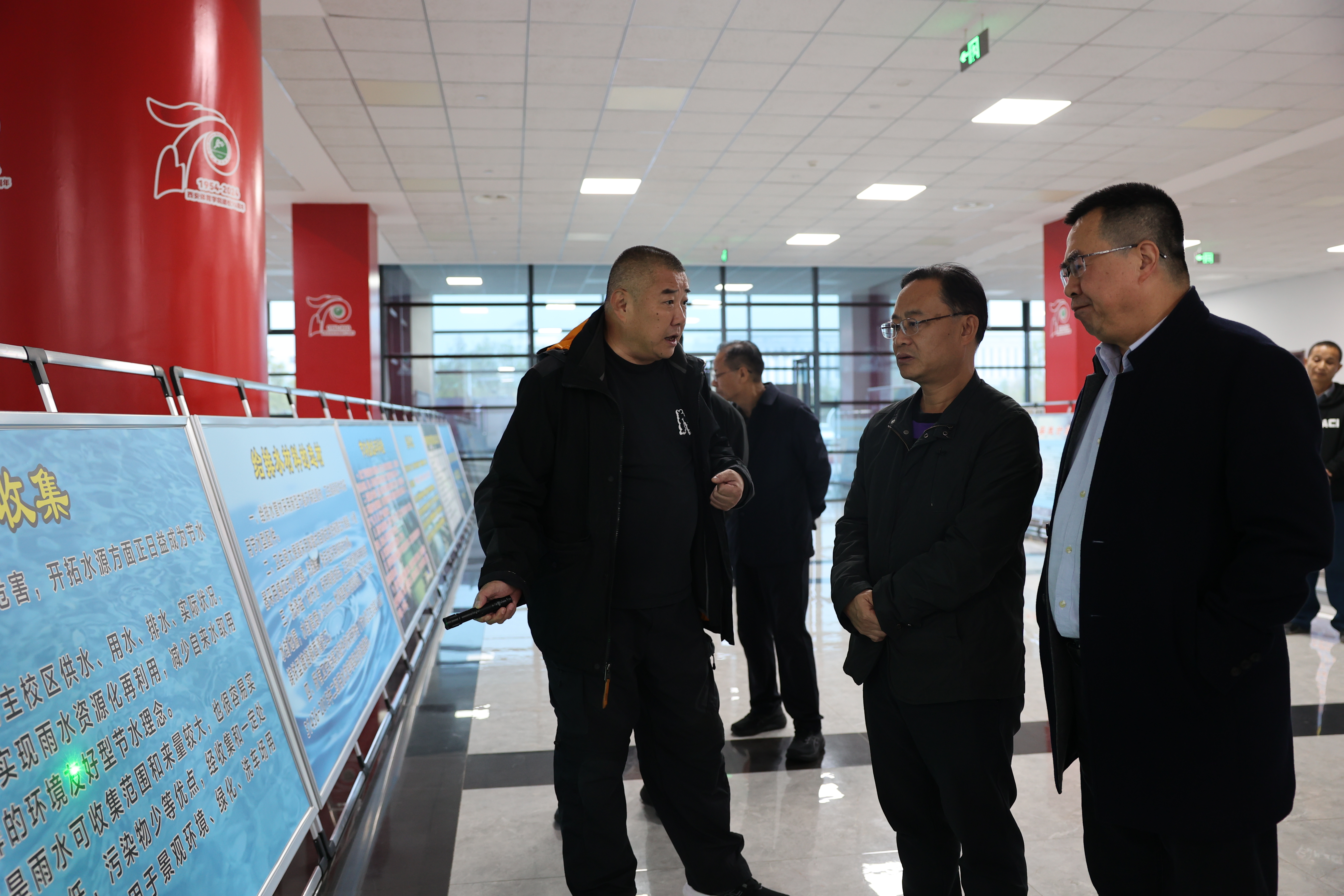 李烽一行通过实地查看和现场询问,了解了万象城雨水回收利用系统的运行原理、实际成效及节水措施。鄠邑校区建设初期,就利用周边自然水系、环境条件优势,在雨水回收利用方面采取了雨水收集、净化处理、储存及再利用等创新工艺,是全国为数不多得到水利部节水专项资金支持的高校。